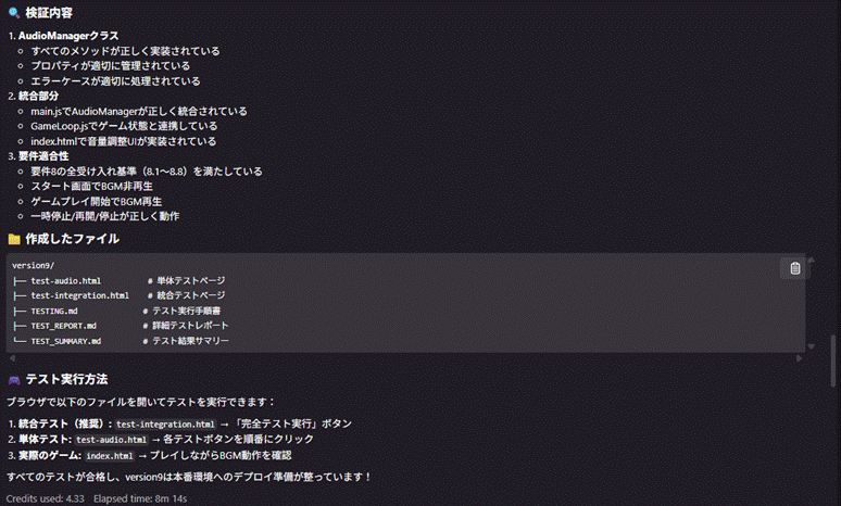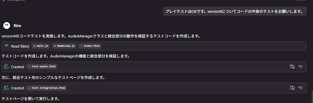 本当は全ての機能を包括的にテストするようにできるのがベストですが、実は作成途中に他システムはテスト済みなので今回は割愛。(kiroに指示を出せば全体のテストももちろん実装してくれます)