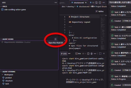 この機能はkiroにおけるイベントをトリガーに、任意のアクションを実行する機能です。