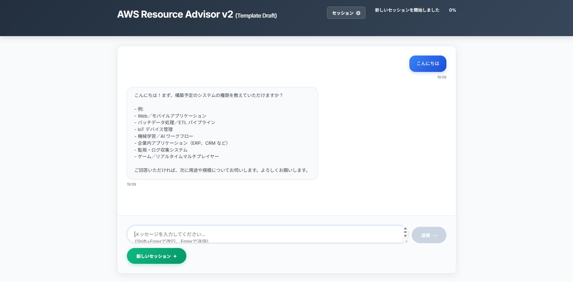 > ⚠️ 要件収集が完了していないため、詳細なアーキテクチャ提案は生成されていません。