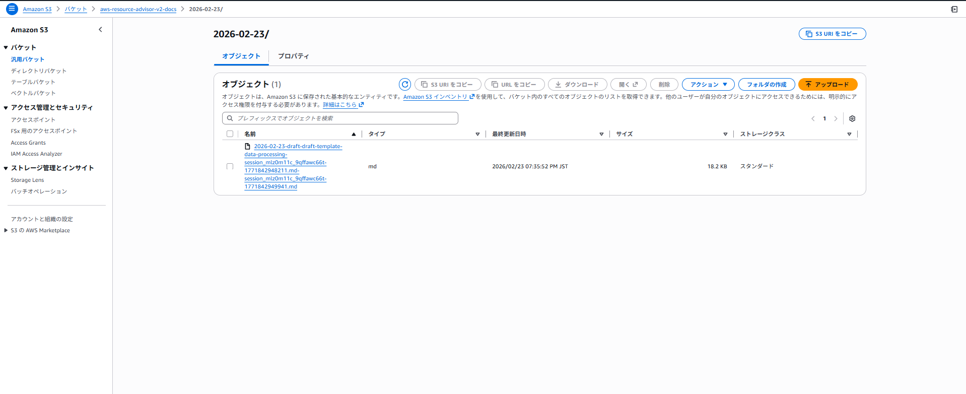 今回の使い道:Web画面ファイル、各種処理ファイルを格納して静的Webサイトをホスティングするバケットを作る。またWeb画面で作成されたドキュメントを格納するためのバケットを作る。