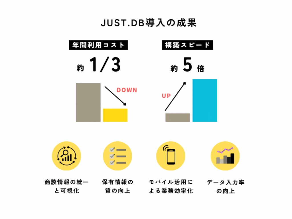 今回のJUST.DBの導入に関しては、ちょうどいいサイズの箱(JUST.DB)に入れ替えた感覚に近いです。元々導入していたサービスは、ややオーバースペックであったこともあり、コストパフォーマンスを最適化できたと感じています。