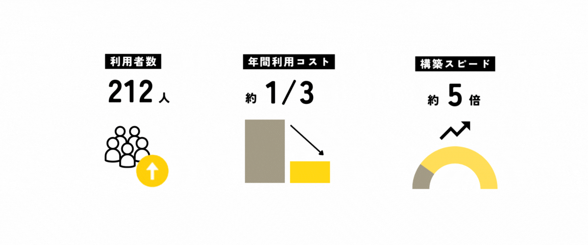 またコストパフォーマンスの改善につながるもう1つの指標としては、社内構築スピードが約5倍に向上し、以前は数ヶ月かかっていた要件変更が、簡易なものであれば即日対応に。